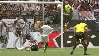 Aos 41 minutos do primeiro tempo, o América teve a chance de abrir o placar contra o Atlético, no jogo de ida da semifinal do Campeonato Mineiro, neste sábado (9/3), na Arena MRV.