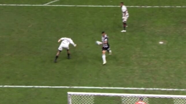 “A câmera 8A comprova que não bate no braço dele, ela passa e desce, ela desce na direção do braço. Divide a tela. Ela toca no corpo e desce, pela câmera invertida a gente vê que não tem contato com o braço. Não houve o toque com a mão. Tudo checado, gol normal”, disse Sá.