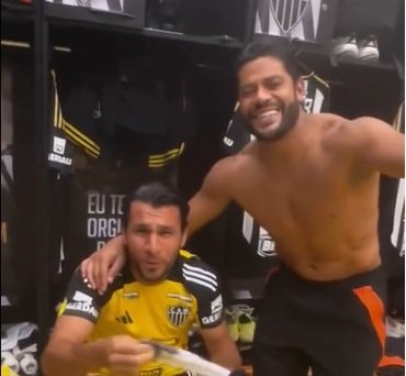 O vídeo original foi publicado por Deyverson no Instagram nesse domingo (16/2). Nas imagens, Hulk, bastante animado, canta o hit abraçado ao zagueiro Junior Alonso.
