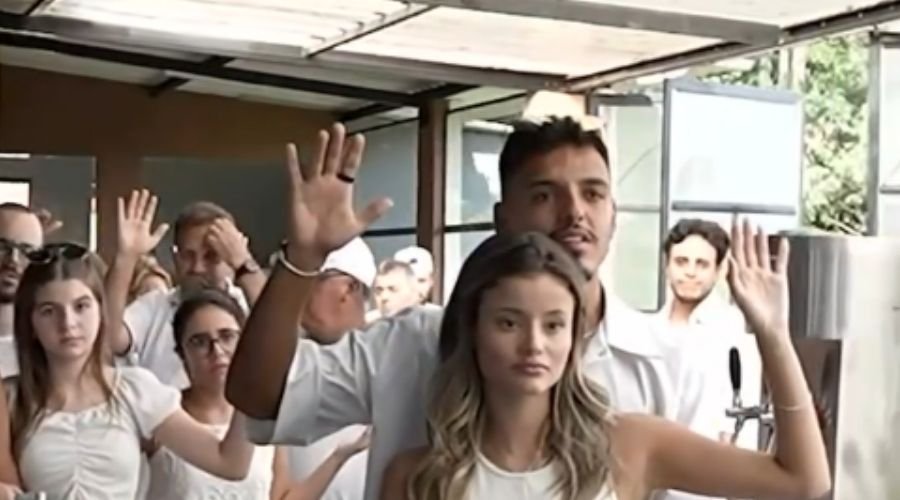 O atleta de 24 anos e a parceira, de 22, serão pais de uma menina, chamada Maria Liz. O post compartilhado pela dupla mostra bastidores da celebração.