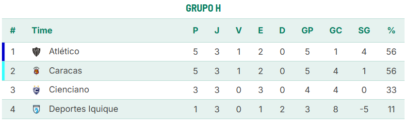 Em outro cenário, caso o Galo vença o Iquique e o Cienciano bata o Caracas, o panorama da briga pela classificação ficará mais aberto. Isso porque o clube peruano chegaria aos seis pontos, “embolando” a disputa no Grupo H.