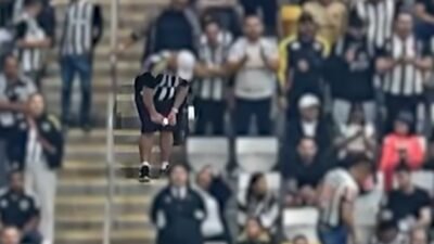 O vídeo também mostra que, imediatamente após arremessar o objeto, o homem subiu duas fileiras de cadeiras para tentar “se esconder” mais uma vez. As câmeras de alta resolução das quais o Atlético dispõe, no entanto, facilitaram a identificação do homem.