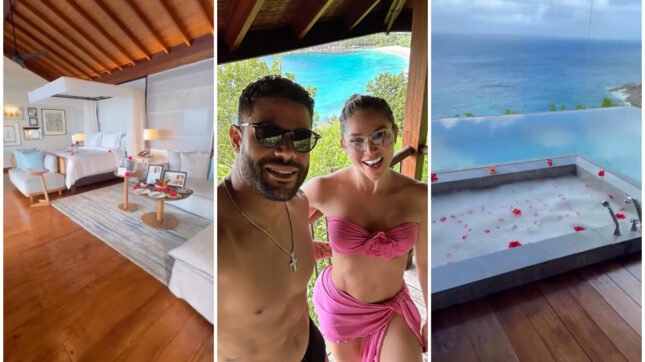 Em publicação neste domingo (15/6), o camisa 7 do Galo mostrou detalhes da hospedagem. O casal, que foi recebido com fotos do casamento e mensagens de boas vindas, poderá usufruir de um local luxuoso que conta com hidromassagem e piscina de frente para o mar. Veja no vídeo abaixo: