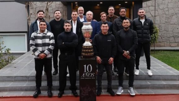 Vargas e outras estrelas do Chile compareceram ao Complejo Deportivo Juan Pinto Duran para celebrar os 10 anos da conquista.