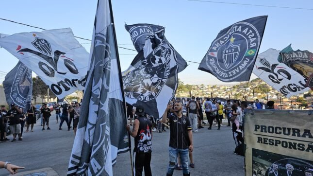 Cerca de 100 torcedores do Atlético se reuniram em frente à Arena MRV e protestaram contra a Sociedade Anônima do Futebol (SAF) do clube na tarde desta quarta-feira (23/7).