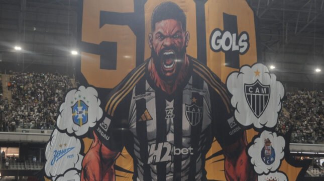 O clube mineiro produziu um “mosaico gigante” em formato 3D em referência à marca atingida pelo atacante. A arte foi exibida pelos torcedores nas arquibancadas antes mesmo da entrada dos jogadores em campo.