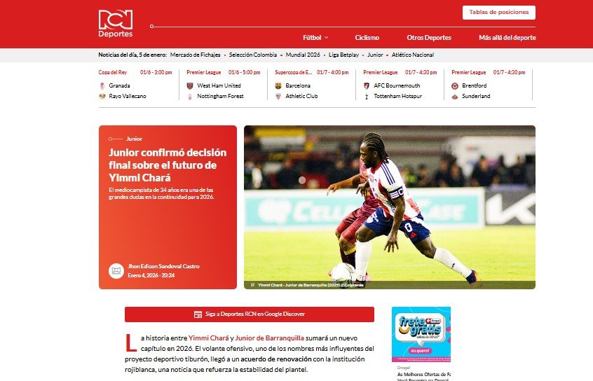 A novela envolvendo o futuro de Yimmi Chará, ex-jogador do Atlético, chegou ao fim nesta segunda-feira (4/1). Dias após revelar publicamente ter propostas para retornar ao Brasil, o atacante de 34 anos definiu o destino para a temporada 2026. Ele renovou vínculo e permanecerá no Junior Barranquilla, conforme noticiou o site Deportes RCN, da Colômbia.