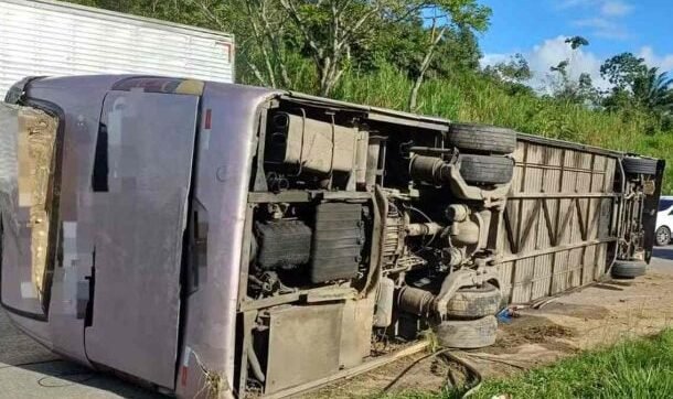 Um ônibus com cerca de 50 torcedores organizados do Bahia tombou por volta das 12h deste sábado (2), no km 138 da BR-101, na cidade de Ribeirão (PE), a cerca de 3h30 do Recife. Até a publicação desta reportagem, cerca de dez pessoas ficaram feridas.