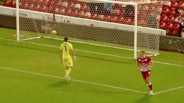 O atacante Sam Cosgrove marcou um gol à la Ronaldo Fenômeno na vitória do Barnsley por 1 a 0 sobre o Wycombe Wanderers, nessa terça-feira (28/11), pela Quarta Divisão do Campeonato Inglês. Já nos acréscimos da partida, o jogador inglês aproveitou que o goleiro soltou a bola na grande área e completou para a rede. Assista ao lance.