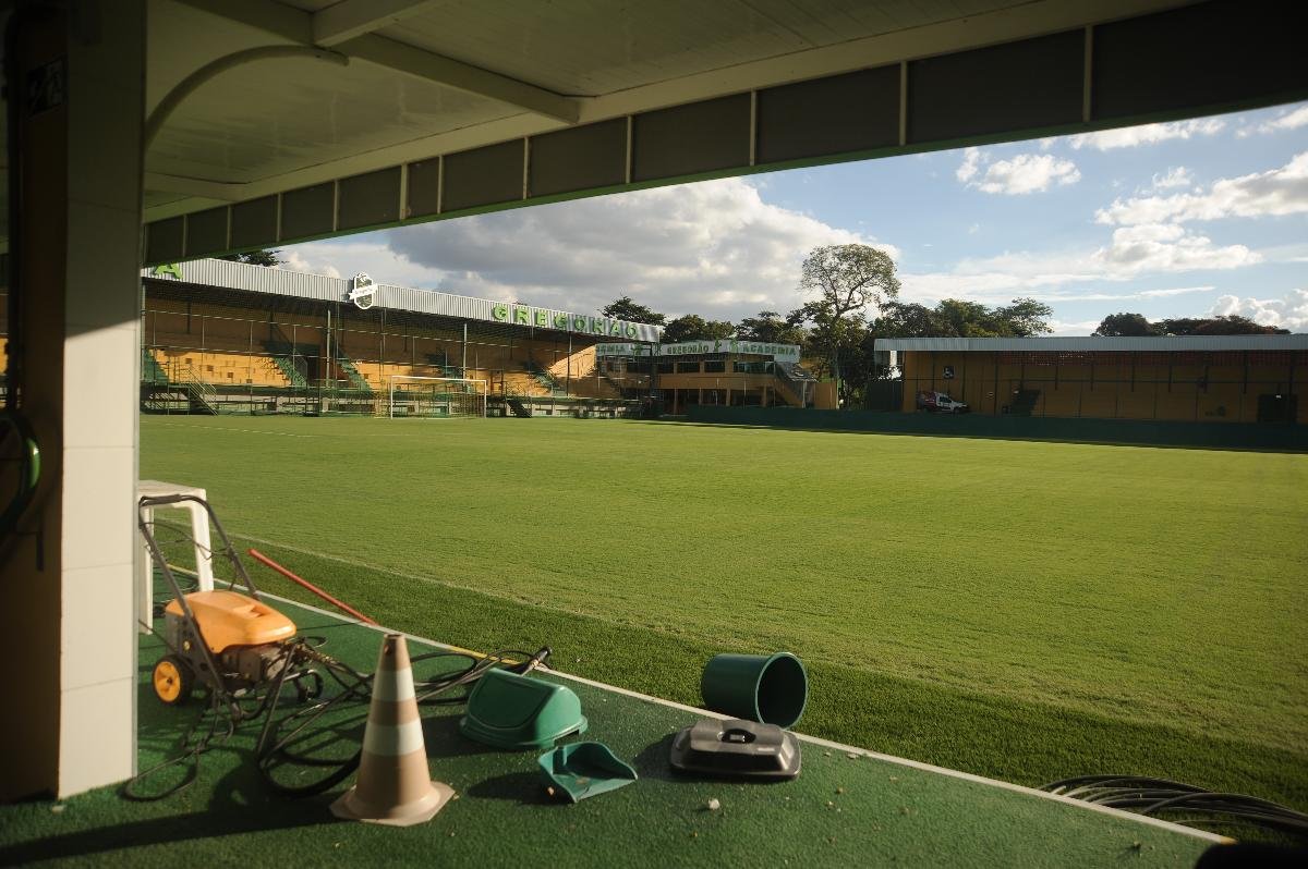 A grama da Arena Gregorão é da espécie Bermudas Celebration, a mesma do Mineirão e do Independência. Segundo os fabricantes, é resistente ao pisoteio, à seca e à sombra, além de ter alto poder de recuperação. Tais características não a eximem de manutenção. No complexo em Contagem, o funcionário Wallace Borges é responsável pelos cuidados diários com o campo.