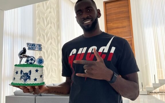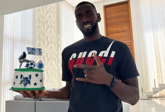 O atacante congolês Yannick Bolasie, do Cruzeiro, completa 36 anos neste sábado (24/5) e resolveu fazer uma homenagem na comemoração. O bolo do festejo é temático, com o escudo do clube, as estrelas, a raposa – mascote celeste – e uma foto dele jogando.