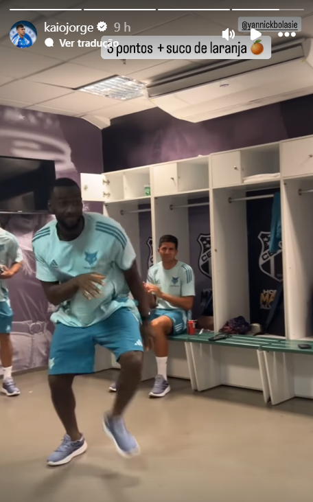 Kaio Jorge também gravou um vídeo de bastidores da vitória na Arena Castelão mostrando o vestiário do Cruzeiro.