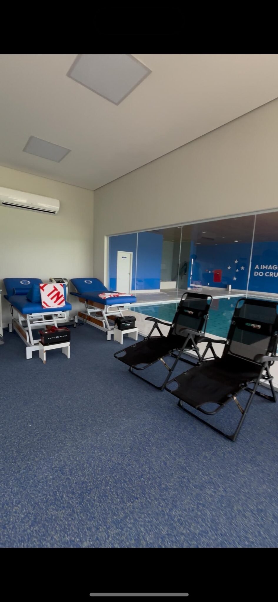 “É um projeto que iniciamos no fim do ano passado. Espaço todo renovado, eficiente e funcional para entregarmos aos atletas o melhor equipamento, a melhor estrutura para que desenvolvam no campo o melhor futebol”, disse Pedro Júnio, vice-presidente do Cruzeiro.