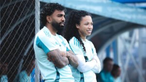 “Eu já sabia, antes de o Gabigol chegar, que ele gostava de futebol feminino. Em uma das primeiras oportunidades que a gente teve de estar na estrutura da Toca 2, o masculino e o feminino, ele acabou o treino, saiu e se sentou na beira do campo para assistir ao nosso treino. Eu me sentei ao lado dele, e ele contou de onde vem a paixão. Ainda guri, nas categorias de base do Santos, ele olhava para o lado e estavam as Sereias da Vila treinando, fizeram história no futebol feminino. Dali ele criou essa conexão. Olha que legal”, conta a dirigente.