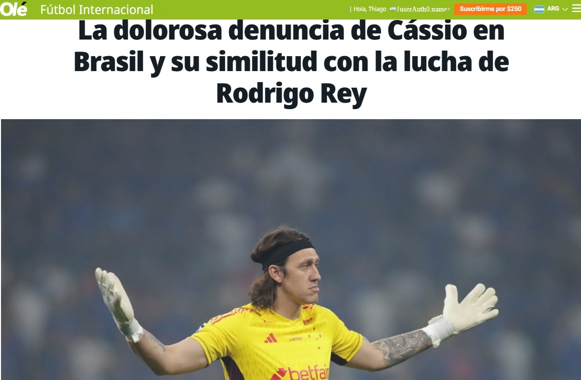 O jornal argentino colocou em manchete: “A dolorosa denúncia de Cássio no Brasil e a semelhança com a luta de Rodrigo Rey”.