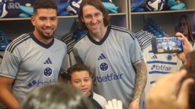 Cássio e Léo Aragão representaram o elenco do Cruzeiro na inauguração da loja oficial do clube no Mineirão. O evento nesta sexta-feira (5/9) marcou o lançamento do uniforme de goleiro, inspirado em atletas que defenderam a Raposa no passado e até hoje estão no imaginário dos torcedores.