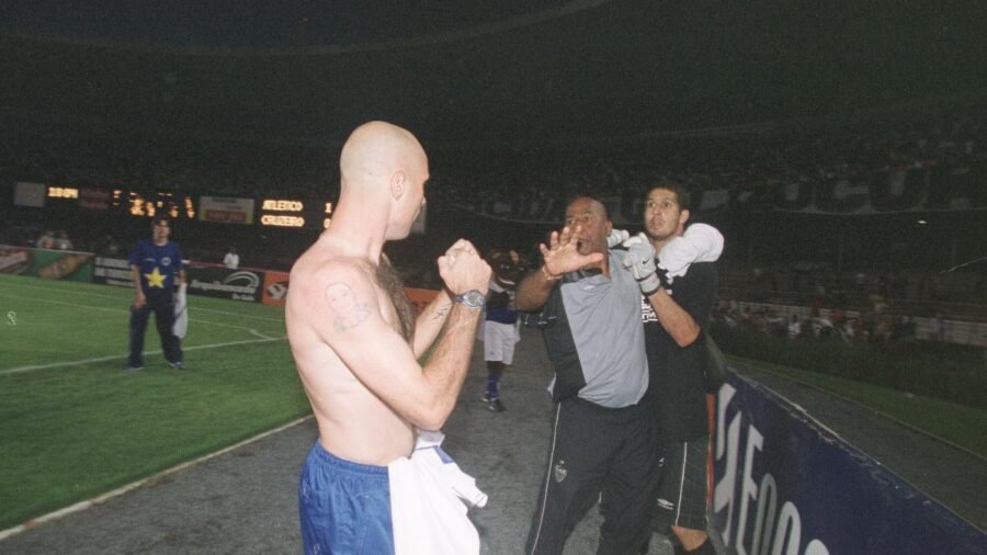 “Mas logo no começo eu sou expulso. Então, putz…mas no final do jogo, dentro do campo tinha aquelas latinhas que saíam fumaça. Aí eu peguei uma em cada mão e fui no meio das torcidas, na divisão, Atlético e Cruzeiro”, continuou.