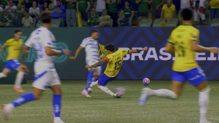 O lance ocorreu logo no início da partida, no Allianz Parque. Inicialmente, o árbitro Rafael Klein não puniu o zagueiro palmeirense, mas foi chamado pela equipe do VAR para revisar a jogada no monitor, com a recomendação de cartão vermelho. Após a revisão, Klein optou por aplicar o amarelo.