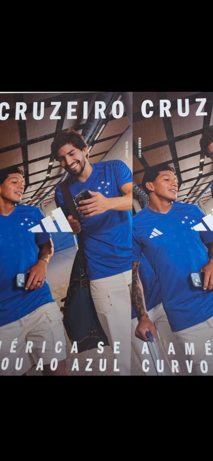 A imagem em questão faz parte do ensaio de divulgação da camisa pela Adidas, fornecedora de material esportivo do clube estrelado desde 2020. Nela, a dupla titular de volantes da Raposa posa com o traje. “A América se curvou ao azul”, diz o slogan.
