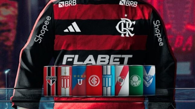 A arte publicada pelo rubro-negro mostra as duas camisas, de Flamengo e Inter, dentro de embalagens dispostas sobre uma bancada que parece de um restaurante. Há ainda latas com os escudos dos clubes que estavam no pote 1 e, assim, poderiam ser sorteados para enfrentar o Urubu.