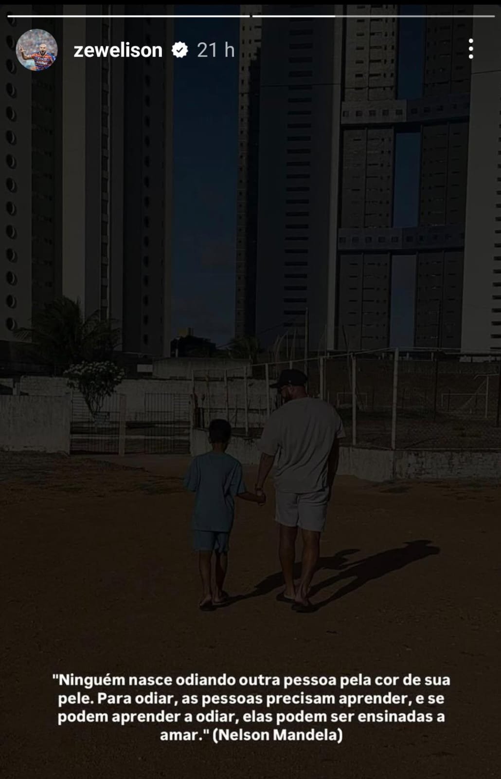 “Ninguém nasce odiando outra pessoa pela cor de sua pele. Para odiar, as pessoas precisam aprender, e se podem aprender a odiar, elas podem ser ensinadas a amar (Nelson Mandela)”, citou.