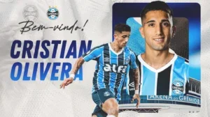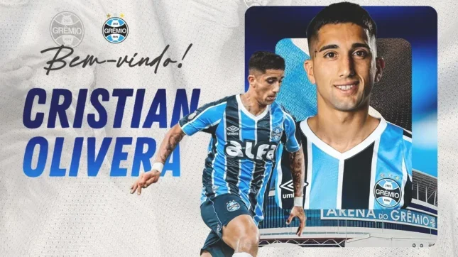 Nesta sexta-feira, o Grêmio anunciou a contratação do atacante uruguaio Cristian Oliveira até o fim de 2027, com opção de extensão por mais um ano por metas atingidas. Ele chega ao clube gaúcho após defender o Los Angeles FC, dos Estados Unidos.