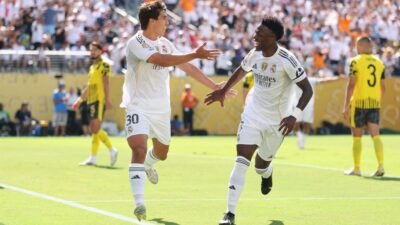 Ainda na primeira etapa, Bellingham e Vini Jr. desperdiçaram chances claras de ampliar. O meio-campista finalizou com perigo após boa jogada coletiva, enquanto o camisa 7 tentou uma cavadinha ao perceber o goleiro adiantado, mas exagerou na força.
