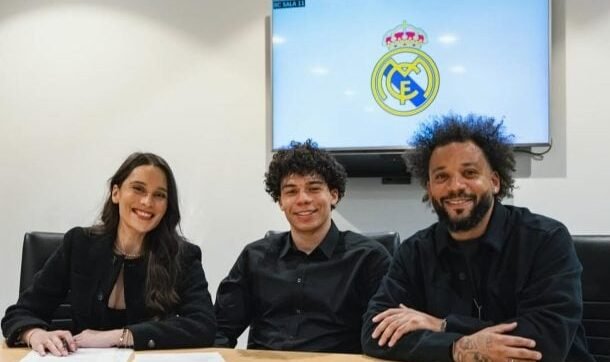 Enzo Alves, filho do ex-lateral-esquerdo Marcelo, deu um passo importante na carreira nesta segunda-feira (26) ao assinar seu primeiro contrato profissional com o Real Madrid. Aos 16 anos, o atacante, visto internamente como um dos grandes talentos das categorias de base do clube, celebrou o momento nas redes sociais ao lado da família.