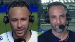 “Jorge, desde já, parabéns pelo vídeo que você falou. Tenho certeza que você é um grande narrador, que faz dessas narrações uma emoção diferente e verdadeira. Obrigado pelo vídeo e pelas palavras, fico muito feliz de ter um cara como você narrando esses momentos incríveis. Não só meus como de todos jogadores brasileiros e internacionais. É incrível ter sua voz nos jogos. Parabéns”, disse o camisa 10 ainda no gramado da Vila Belmiro.