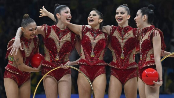 Mais um dia de Mundial de Ginástica Rítmica de 2025 e mais uma medalha histórica para o Brasil. Neste domingo (24/8), na Arena Carioca 1 do Parque Olímpico do Rio de Janeiro, as Leoas – grupo formado por Duda Arakaki, Nicole Pircio, Sofia Madeira, Maria Paula Caminha e Mariana Gonçalves – brilharam novamente, tiveram uma apresentação impecável e ficaram com a medalha de prata.