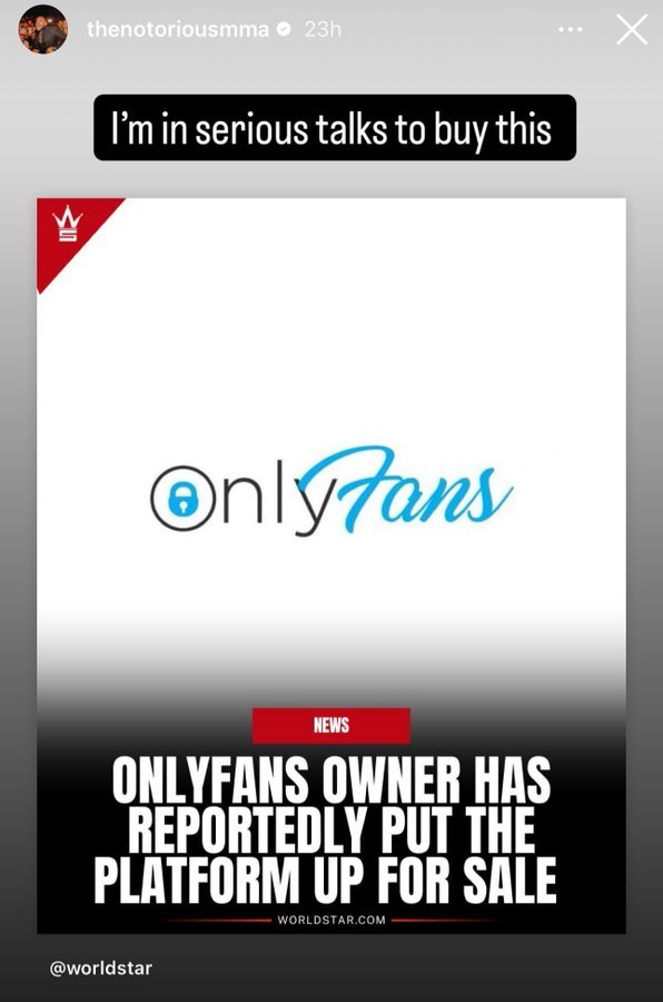 Recentemente McGregor repostou, nos Stories do Instagram, uma notícia sobre o desejo do dono da companhia, Leonid Radvinsky, de vender a empresa e afirmou que deu início a uma negociação.