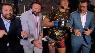 “Não vou mentir: talvez eu comente em português brasileiro sobre o card do UFC Rio. Não falo nada de português brasileiro… mas isso é absolutamente eletrizante. Alex Pereira dançou com toda a galera”, destacou outra página norte-americana.