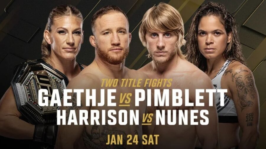 Na luta principal do UFC 324, a categoria peso-leve (até 70,3 kg) busca um campeão interino. Com o espanhol Ilia Topuria – dono do cinturão – distante do MMA no primeiro trimestre por razões pessoais, o octógono receberá uma batalha explosiva. O norte-americano Justin Gaethje, de 37 anos, enfrentará o britânico Paddy Pimblett, de 31.