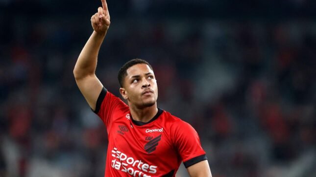 Vitor Roque trocou o Cruzeiro pelo Athletico Paranaense em abril de 2022. Desde que chegou ao Furacão, o camisa 9 marcou 22 gols e deu oito assistências em 66 jogos. Ele completou 18 anos em 28 de fevereiro.