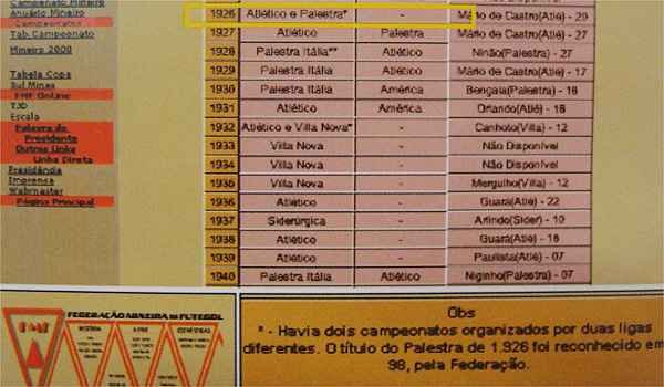 Na revista número 47 da Raposa, há uma imagem que reproduz o site oficial da FMF da época, em que Atlético e Palestra Itália são considerados campeões.