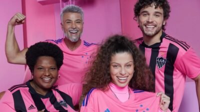 Lançado nos cinemas do Brasil nesta semana, o filme Barbie repercute bastante nas redes sociais por causa dos elogios da crítica especializada. Além disso, diversos vídeos que viralizaram, gravados em shoppings do país, mostram que as pessoas estão formando um verdadeiro mutirão cor de rosa em homenagem à personagem. Diante dessa nova febre no universo do entretenimento, o No Ataque relembra agora os times de futebol brasileiro que já produziram uniformes cor de rosa. É hora de tirar a camisa do armário e ver o filme da Barbie com estilo!