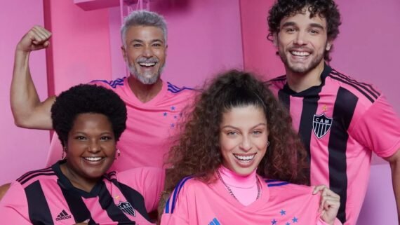 O time celeste lançou uma vestimenta nessa cor durante a campanha Outubro Rosa – contra o câncer de mama.