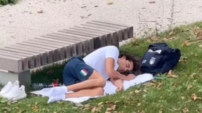 CLEO GUIMARÃES – Campeão olímpico dos 100m costas e medalha de bronze no revezamento 4x100m livre nesta edição dos Jogos, o italiano Thomas Ceccon viralizou nas redes sociais ao dormir no gramado da Vila Olímpica de Paris para fugir das altas temperaturas nos quartos reservados aos atletas, que não têm ar-condicionado.