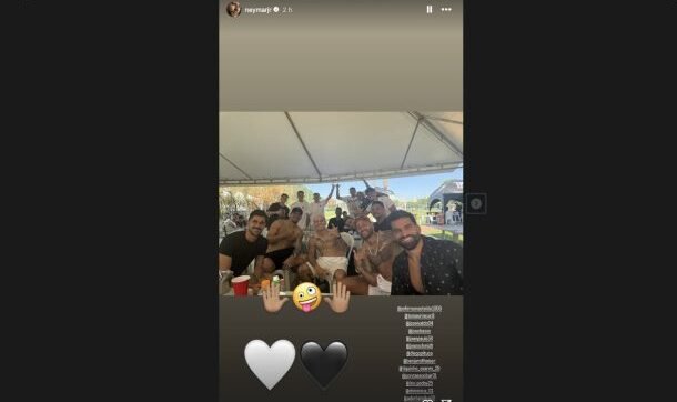 Atacante do Santos, Neymar compartilhou, na tarde desta quarta-feira (26), uma foto de uma confraternização entre os jogadores do Peixe após o treino. O encontro aconteceu nas dependências do CT Rei Pelé.