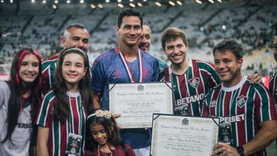 “Só tenho a agradecer a todo mundo que me recebeu aqui. Já são sete anos de Rio de Janeiro. Obrigado pelo carinho e espero que eu possa fazer muita gente feliz dentro de campo. Os cariocas sempre me receberam com muito carinho, respeito e cuidado”, disse o camisa 10 tricolor.