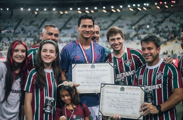 Antes do triunfo do Fluminense por 1 a 0 sobre o Santos, Paulo Henrique Ganso recebeu uma importante honraria no gramado do Maracanã, diante da torcida tricolor. Assim, o meia teve o título de cidadão honorário do Rio de Janeiro e a Medalha Pedro Ernesto, maior comenda do poder legislativo da cidade, por sua contribuição ao esporte.