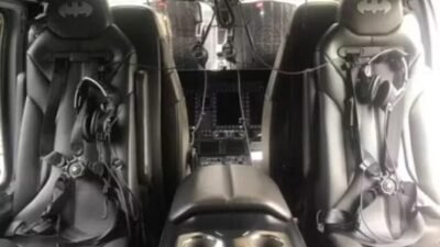 O helicóptero de Neymar,que está impedido de voar pela Agência Nacional de Aviação Civil (Anac),tem a parte interior personalizado de Batman, um dos super-heróis preferidos do atacante. Vale ressaltar que também tem a customização com as inicia do jogador, na causa da aeronave.