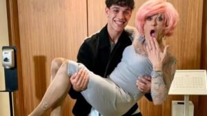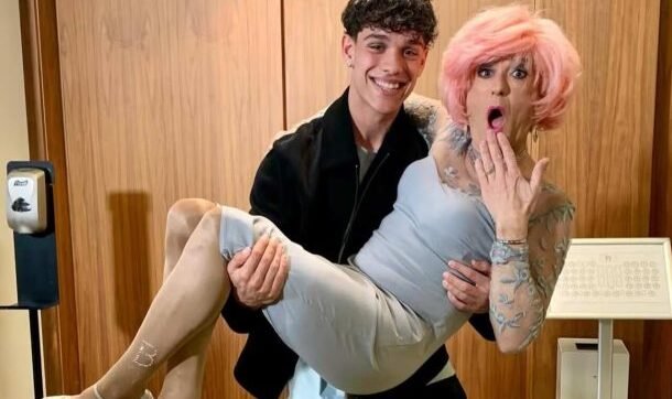| | Héctor Front (esquerda), jovem lateral-direito do Barcelona foi vítima de ataques homofóbicos após esta foto ao lado da ativista LGBTQIA+, Brigitta Lamoure