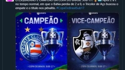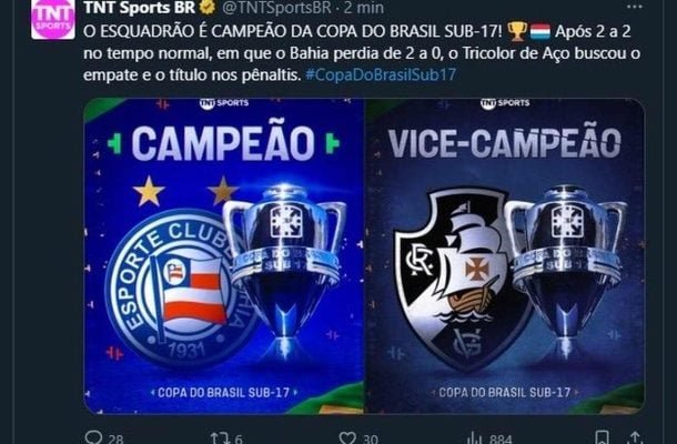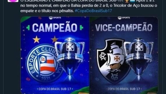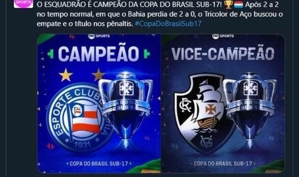 | | Vasco venceu o Bahia e conquistou o título da Copa do Brasil Sub-17, mas a TNT Sports errou a publicação