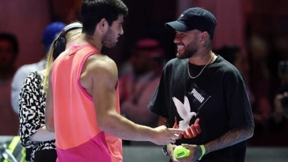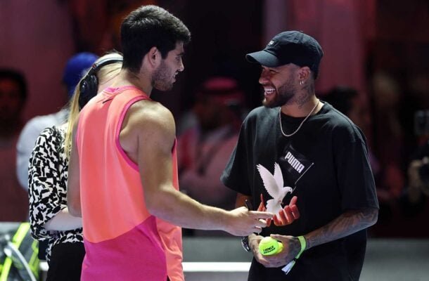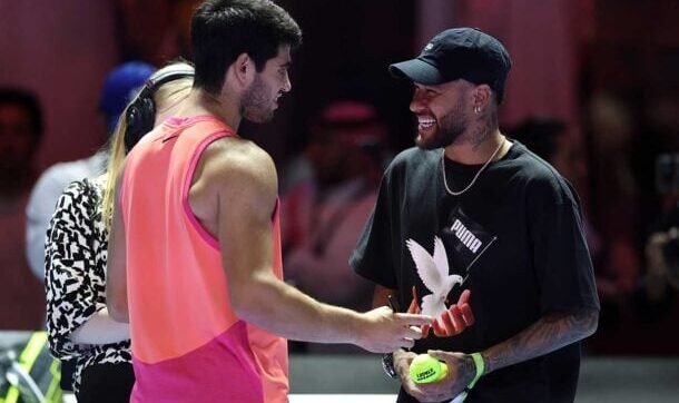 | | Neymar e Carlos Alcaraz tiveram um encontro na Arábia Saudita, quando o atacante ainda defendia o Al-Hilal