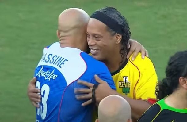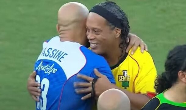 Ronaldinho recebeu uma bola na ponta-esquerda, deu um elástico em Cheuko e depois deu outro elástico no segurança de Messi. No entanto, o segundo drible não foi completado. Afinal, a defesa afastou o perigo. O time de Roberto Carlos derrotou o de Ronaldinho Gaúcho por 7 a 6. Ambos foram campeões da Copa do Mundo com o Brasil em 2002, assim como Gilberto Silva e Kleberson.
