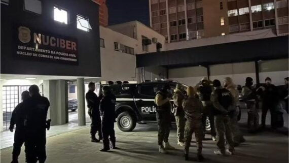 Mais de cem policiais civis executaram uma megaoperação, nesta terça-feira (24), para desmontar um esquema de estelionato que fraudou a portabilidade de salários de jogadores da Série A do Brasileirão. Batizada de ‘Falso 9’, a ação ocorreu de forma simultânea em Almirante Tamandaré (PR), Curitiba (PR), Cuiabá (MT), Porto Velho (RO) e Lábrea (AM), e resultou no cumprimento de 33 ordens judiciais — 22 mandados de busca e apreensão, nove de prisão preventiva e dois de prisão temporária.