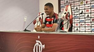 Maior contratação da história do Flamengo, Samuel Lino foi apresentado um dia após estrear pelo Flamengo. Afinal, o atacante entrou no segundo tempo da derrota diante do Atlético por 1 a 0, quinta-feira (31), no Maracanã, pelo jogo de ida das oitavas de final da Copa do Brasil. Ele chegou a marcar nos acréscimos, no entanto, estava impedido.