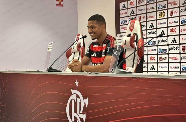 O atacante Samuel Lino passou por uma situação inusitada durante a sua apresentação, nesta sexta-feira (1), no CT Ninho do Urubu. Afinal, o jogador retornou minutos depois de se despedir da imprensa para buscar o seu celular, que ficou na mesa. A cena deixou o clima descontraído entre os jornalistas e rendeu brincadeiras com o camisa 16.