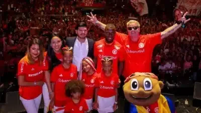 “Uma maneira especial de chamar o Enner Valencia para o palco. Vamos fazer o seguinte: esse pessoal aqui grita “Va”, pessoal do “Grê”… do meio, grita “Len”, e o pessoal de lá grita “Cia””, disse o ator.